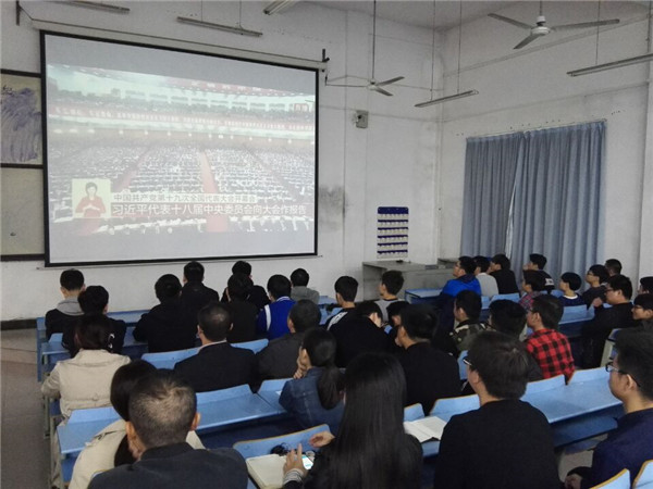 (通讯员 董甜甜 报道)青春心向党,喜迎十九大!10月18日上午9:00,中国共产党第十九次全国代表大会开幕会在人民大会堂大礼堂举行。全国各地各高校师生纷纷观看开幕会盛况,认真聆听、学习习近平总书记代表十八届中央委员会向大会所作的报告。