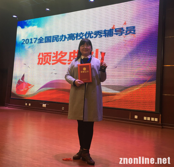 据了解,这也是该校第二位素质导师荣获“全国民办高校优秀辅导员”称号。去年4月,该校素质导师张静从全国数百所民办高校的辅导员中脱颖而出,荣获“全国民办高校优秀辅导员”称号,并作为获奖代表发言。(完)
