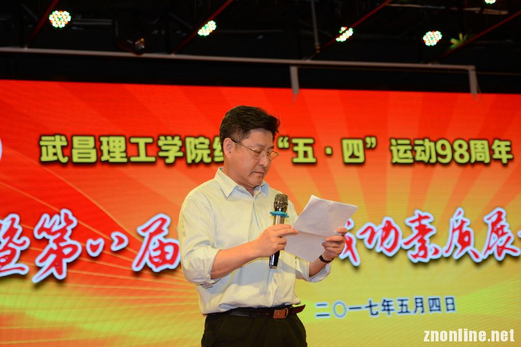 由该校大学生艺术团排演的一场气势恢宏的舞蹈《欢欣鼓舞》,节奏明快,成功带动了全场的气氛,全场为之沸腾。副校长杨伦教授作致辞讲话,他表示,正值纪念“五·四”运动98周年,对全校团员、青年致以节日的问候,同时向在此次大会中获表彰的集体、个人表示祝贺。他希望同学们用实际行动去诠释五四精神的重要内涵,把个人梦想融入到学校的发展目标之中。踏实学习,勇于拼搏,不断探索,力争成为专业素质扎实、通适素质过硬、创新素质突出的高素质人才。他谈到“青年兴,则国家兴;青年强,则国家强;青年是祖国的未来,民族的希望,是社会主义建设事业的生力军。鼓励同学们为实现中华民族的伟大复兴、绘画社会主义事业美好蓝图的壮丽事业而努力奋斗。”他向团员青年们提出了勤学、立德、明辨、笃行四点希望,希望团员青年们能在追求卓越、走向成功的道路上昂首迈进,奋力向前。