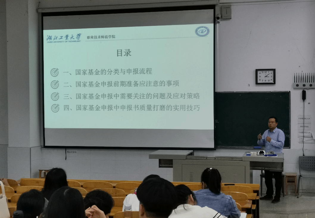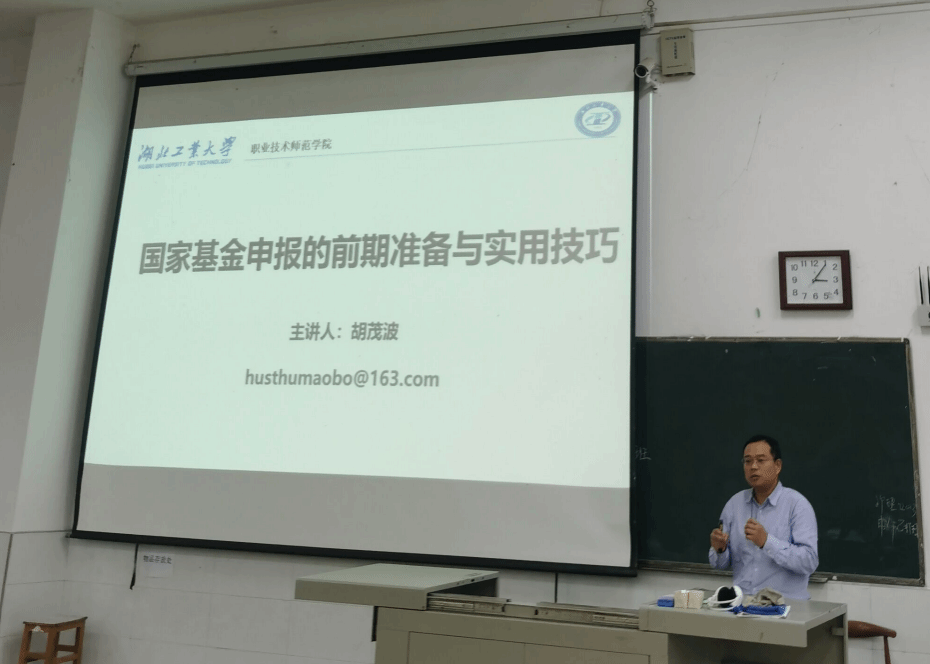 (通讯员蔡丽丽、曾洁)9月25日下午,通适素质教学学院特邀湖北工业大学职业技术师范学院副院长胡茂波教授来校开展梅南讲坛,为通适素质教学学院、马克思主义学院全体教师作《国家基金申报的前期准备与实用技巧》专题科研讲座。