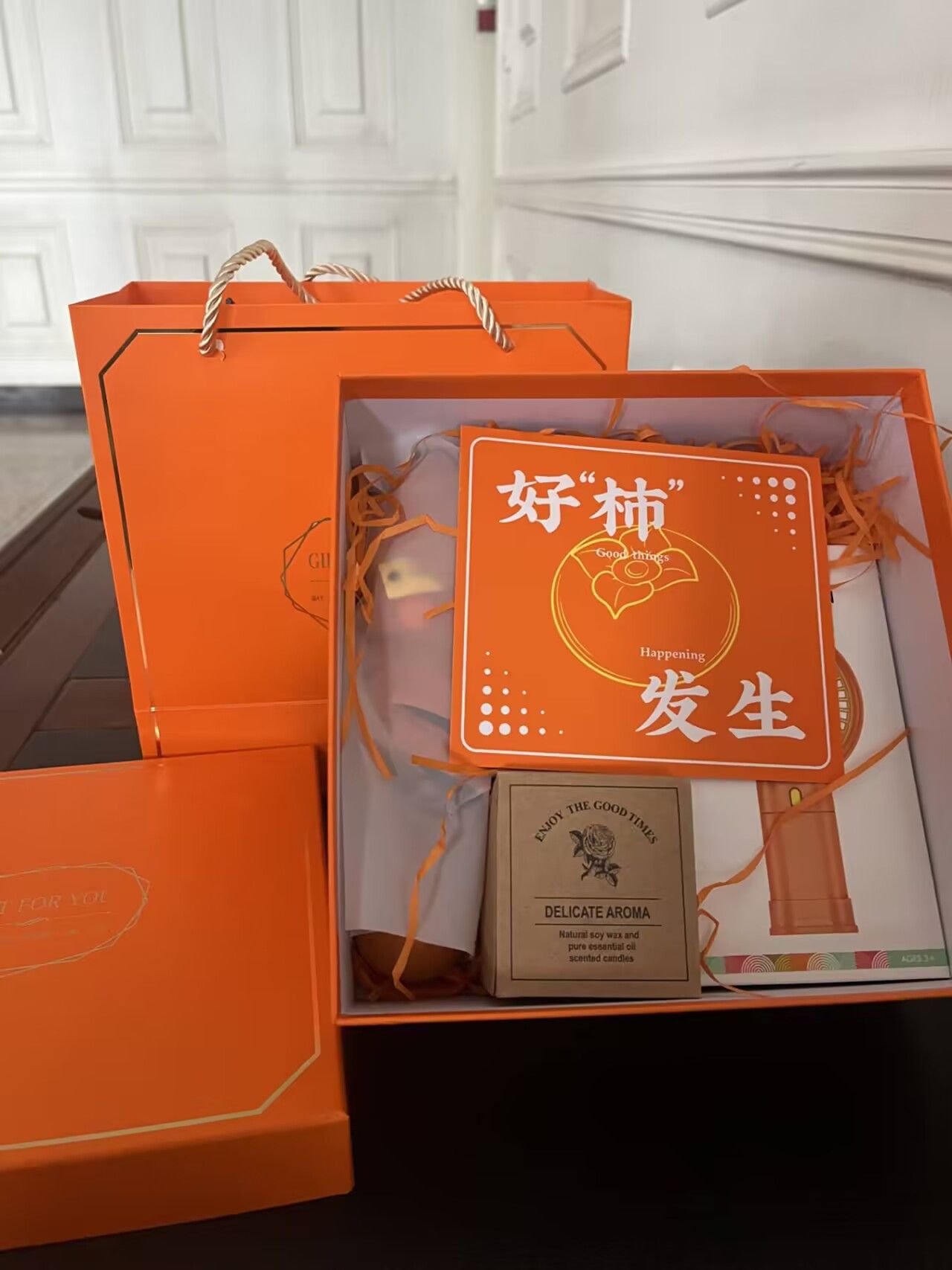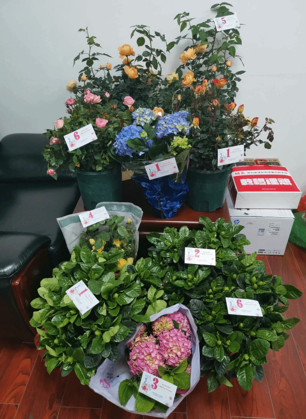 考虑到3月8日当天是周五,大部分老师没有课,所以将集中抽取祝福福袋花签的活动设置在3月4日(周一)下午。各课部教师都在学院开展集中的教研活动,惊喜第一波是院工会副主席曾洁副院长和院女工委员廖琴老师、李熳老师,提着满满的祝福逐个课部抽福袋、送祝福。活动现场,送祝福小队热情地向老师们讲解着抽签规则,老师们满怀期待地排着队,不时还讨论着盲盒礼物,向朋友们分享着喜悦。抽盲盒福袋的趣味、诱人的小物花果香气,阵阵的欢声笑语,气氛十分温馨。喜悦的第二波是3月5日,学院为每一间办公室都配备了一盆开花的绿植,有绣球花、月季、栀子花,紫色的、蓝色的、粉色的、黄色的、白色的、香槟色的,每一朵可爱的香香的花朵装点着老师们安心的办公场所,男性教师也得以长久地分享春日里这个温暖节日的快乐。而惊喜的第三波是来自毕业生优秀校友赠予全校女老师的健康艾灸套装,平等地关爱了每一位亚健康的女老师。持续到3月7日的第四波快乐来自于校工会为每位女教职工准备的“好柿发生”礼盒,夏日必备遮阳伞、手持风扇及香薰蜡烛。热情的橙红色搭配萌萌的造型融化了一众女老师的心。