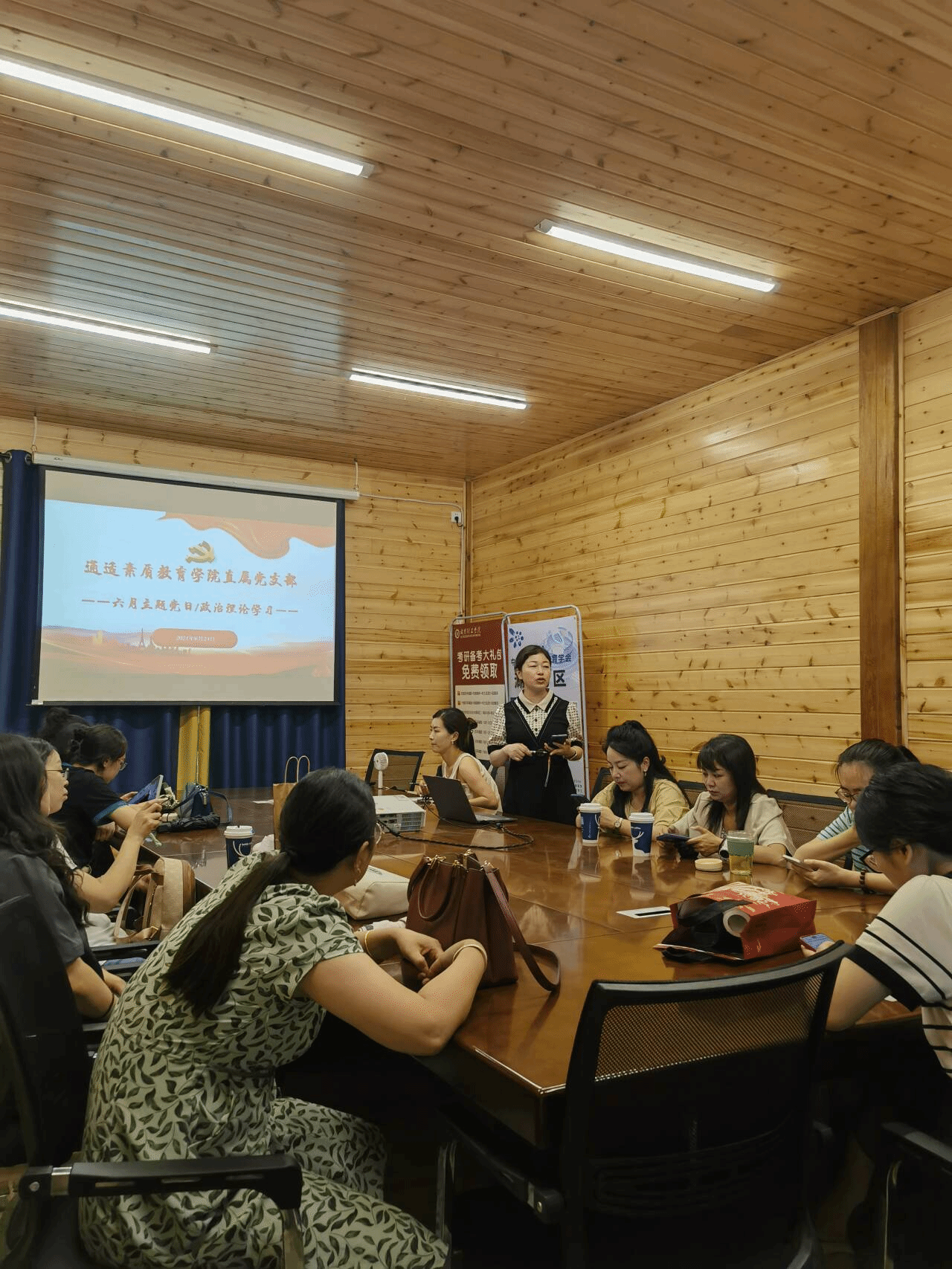 304永利集团直属党支部于2024年6月24日(周一)下午在学院党员活动室开展了六月主题党日和政治理论学习活动,支部全体教工党员参加。通报了到会党员人数后,活动开始,全体党员起立奏唱国歌,支部书记李丽娜同志带领大家重温入党誓词。