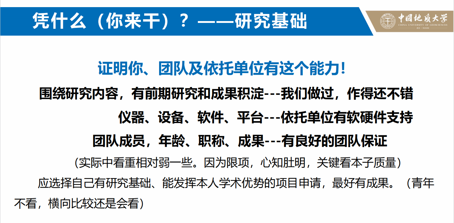 罗学东教授从哪里找项目、如何确定适合自己的选题、立项申请不同阶段该如何做、申请书撰写细节四个方面来指导教师如何申报高质量自然科学基金项目。首先分享了其主持完成的国家自然科学基金面上项目、湖北省自然科学基金面上项目、教育部自科、武汉市科技项目等纵向项目,以及与企业合作项目、实验室开放基金项目,明确指出老师们应当以积极好心态不等不靠,主动出击,用申请国自科的标准要求自己,瞄准自科、盯紧省、市、企业各类项目、实验室开放基金项目和横向资源;然后自科老师应从基础性、联系性、拓展性、结合性四个方面分析确定自己的选题,并梳理了自科项目申请各阶段如何完成的关键事项;最后他重点跟老师们交流了项目申报中存在的申报书撰写细节,案例式分析针对这些问题,罗教授提出许多宝贵建议。