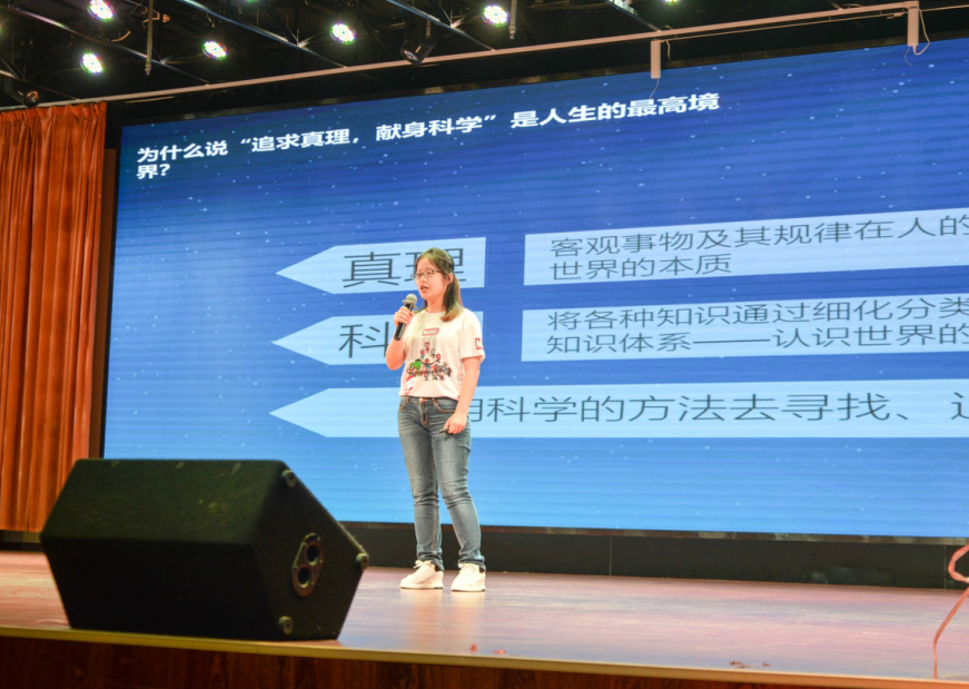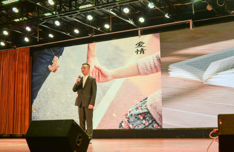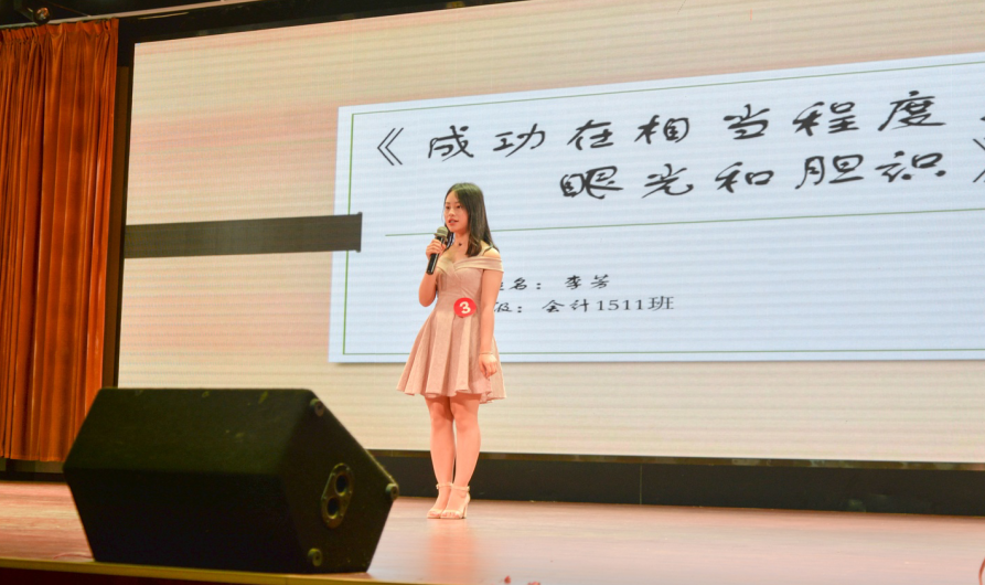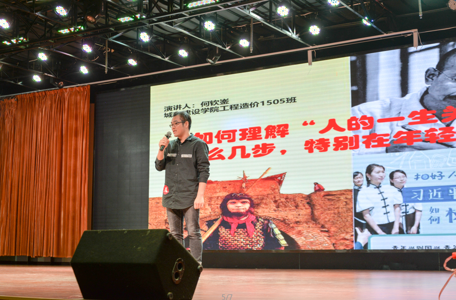 当日晚六点,比赛正式开始,现场座无虚席,近千名学生来到现场观看此次比赛。首先,1号选手、商学院国贸精英班的边旭霞同学以《为什么说良好的习惯会使人终身受益》为题进行了精彩演讲,拉开了此次比赛的帷幕,通过与在场师生手势与眼神的互动阐释了习惯与改变的意义。随后,2号选手、信息工程学院的赵基祥同学演讲了《什么是正确的恋爱观》,他用激昂的声音,流畅的幻灯片,博得了台下观众的阵阵掌声,点燃了比赛现场的氛围。紧接着,来自各学院的参赛选手依次登台亮相,饱满的精神,声情并茂的演讲,为在座来宾带来一场视听盛宴。其中,17号选手、艺术设计学院的高亚文同学在演讲时提出“给你一千万,你会做什么?”清晰的逻辑,真实的情感,获得了雷鸣般的掌声,将现场气氛推向高潮。演讲结束后,他鼓励同学们要酝酿大胸怀,创造大舞台。